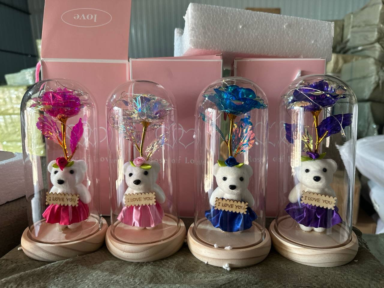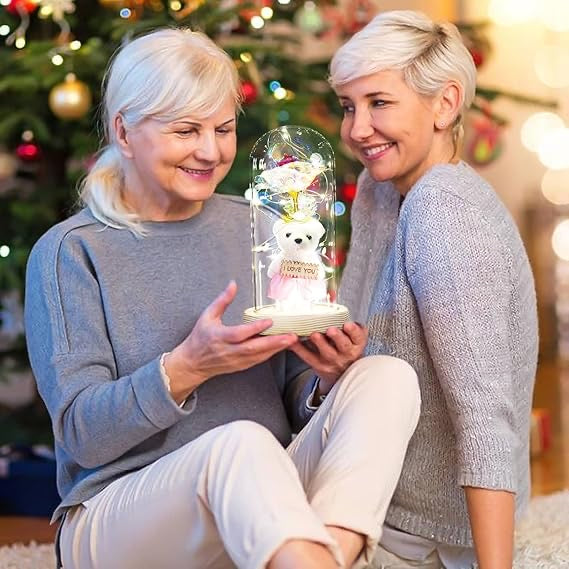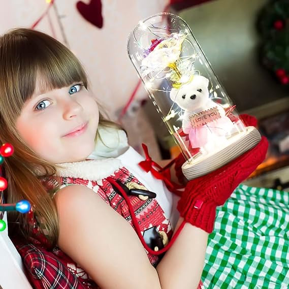Wrapped with delicate LED string lights, the rose glows softly in the dark — creating a romantic ambiance in bedrooms, living rooms, or display shelves. The lights automatically shift colors, casting a dreamy galaxy-like effect.