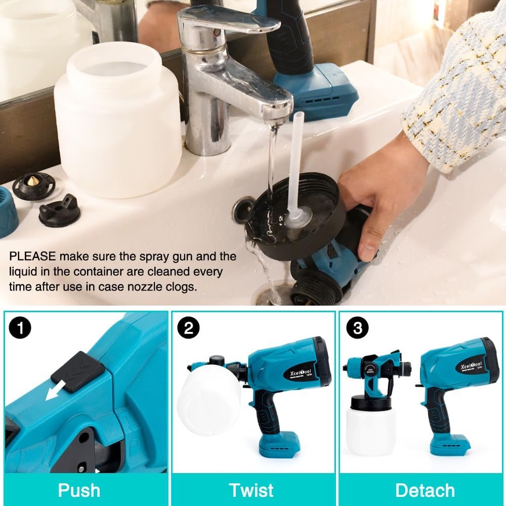 - Easy To Use and Clean : The design is easy to spray, just install the paint to complete the spraying work. All parts of the sprayer can be easily disassembled, so you can easily complete the cleaning work
