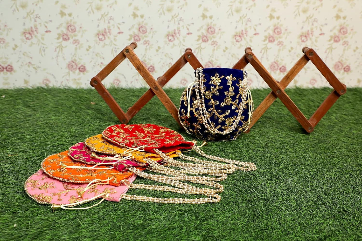 Potli Bag For Women Ethnic Designer Embroidery Work Batwa Pearls Handle With Intricate