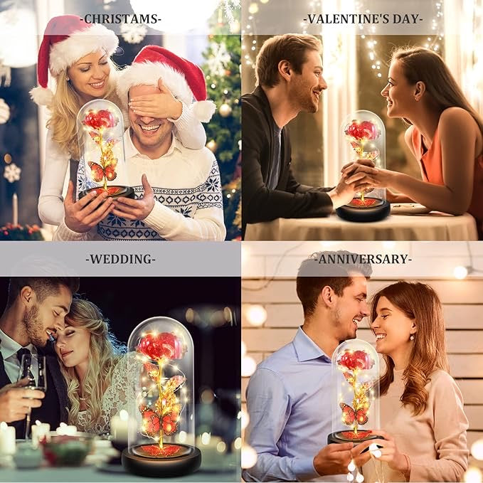 Soft, warm yellow LEDs are delicately wrapped around the rose, illuminating it from every angle. Perfect as a night lamp, mood light, or centerpiece, it brings a soft, starry ambiance to any space.
