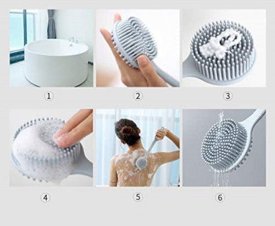 Silicone Bath Brush with Long Handle – Dual-Sided Scrub & Massage, Gentle Exfoliation, Hygienic & Eco-Friendly